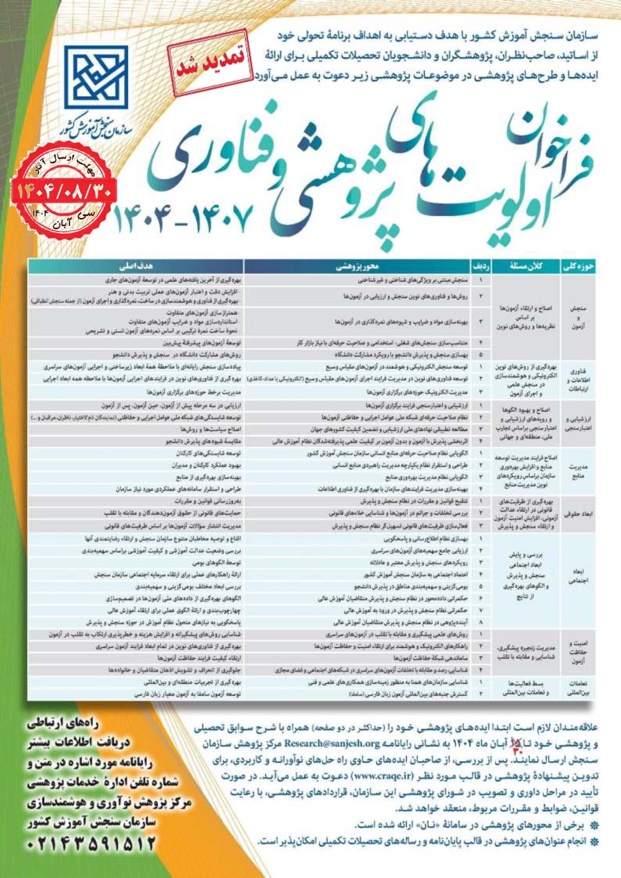 فراخوان اولویتهای پژوهشی سازمان سنجش آموزش کشور