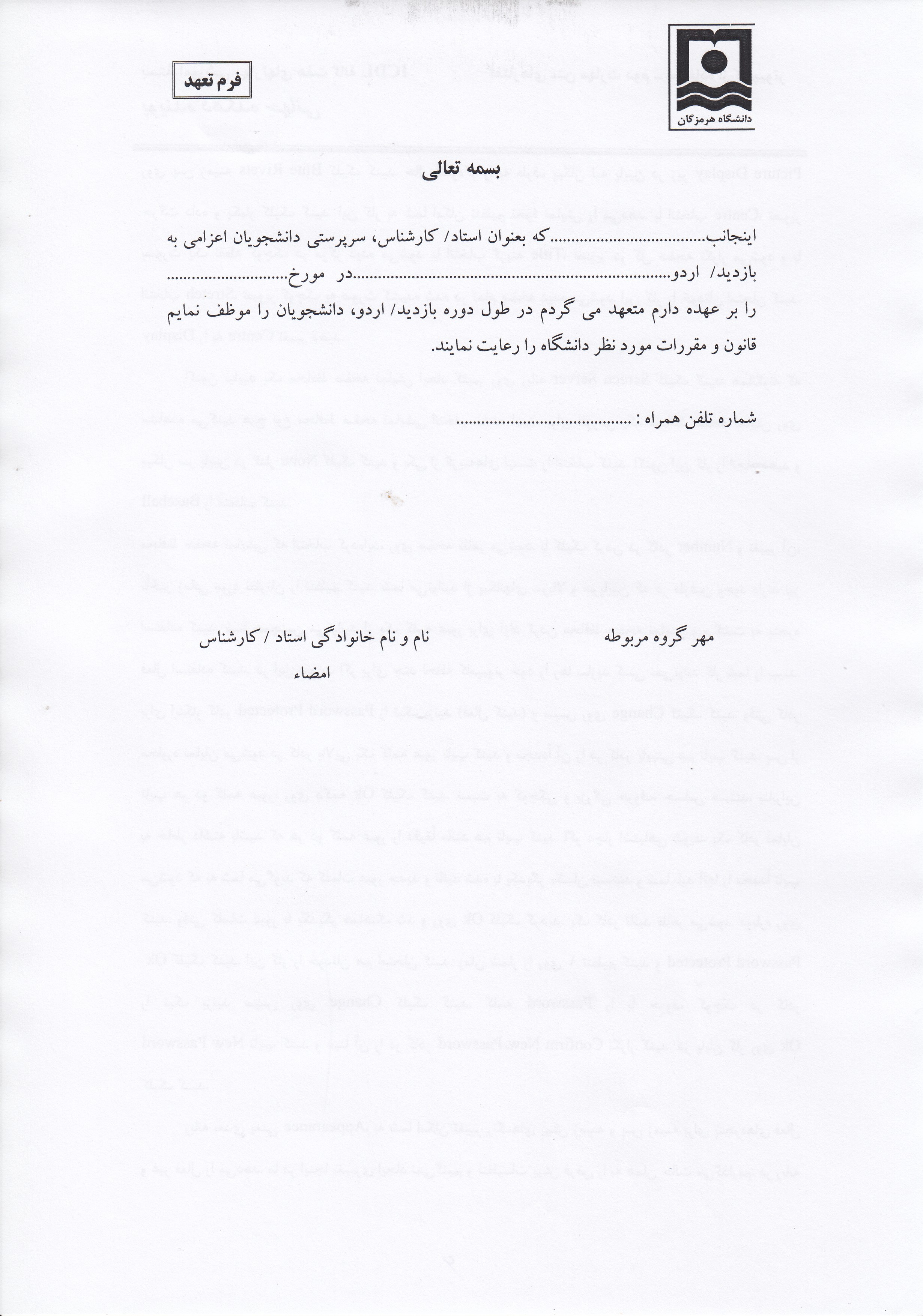 فرم تعهد استاد برای بازدید(5090)