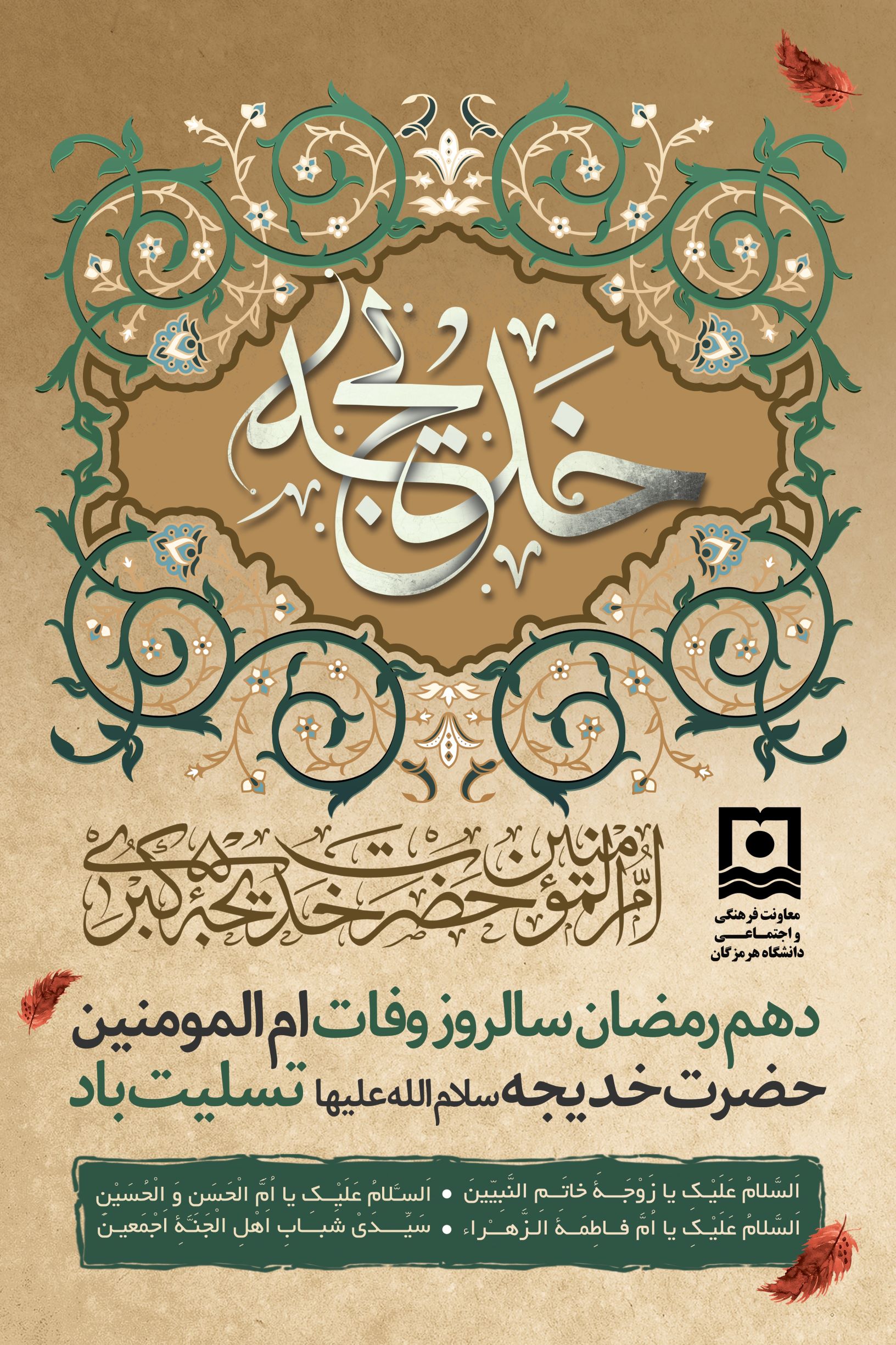 در دهمین روز از ماه پرفضیلت رمضان، سالروز وفات حضرت خدیجه کبری (سلام‌الله‌علیها) را به تمامی مسلمانان و جامعه دانشگاهی تسلیت عرض می‌نماییم. بانویی که با ایمان بی‌نظیر، فداکاری‌های بی‌بدیل و حمایت تمام‌عیار از رسالت پیامبر گرامی اسلام (ص)، نه تنها نخستین یاور و مؤمنه به دعوت الهی بود، بلکه الگوی زن مسلمان در گذشت، وفاداری و خدمت به حقیقت شد. حضرت خدیجه (س) با بذل همه هستی و ثروت خویش در مسیر دعوت حق، نشان داد که ایمان و ایثار، زیباترین جلوه‌های عشق به خدا و رسول اوست.