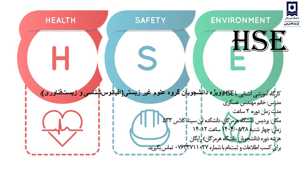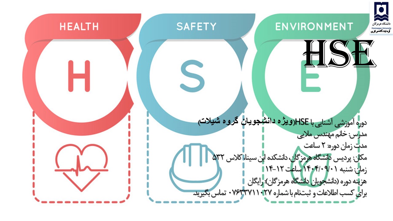 اطلاعیه زمانبندی کارگاه آشنایی با HSE برای ورودی های جدید دانشکده