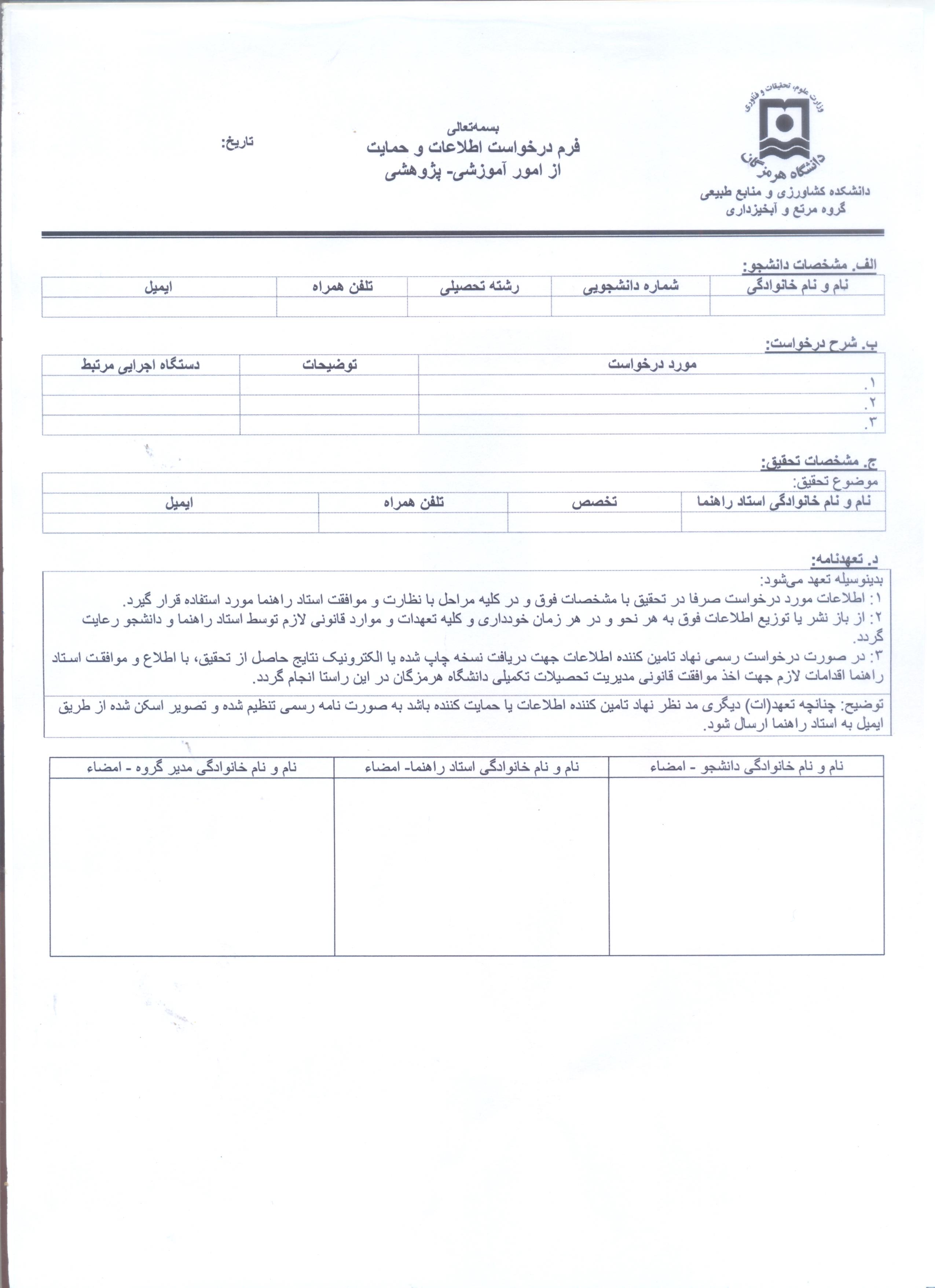فرم درخواست داده از ادارات خارج ازدانشگاه(2032)